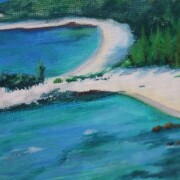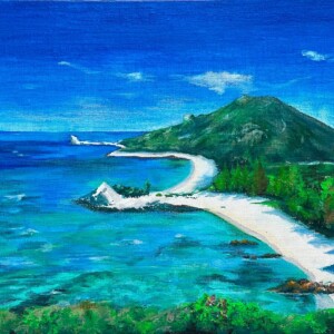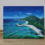 風景画【南国の海】アクリル、色鉛筆