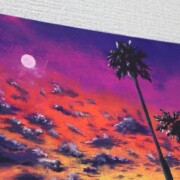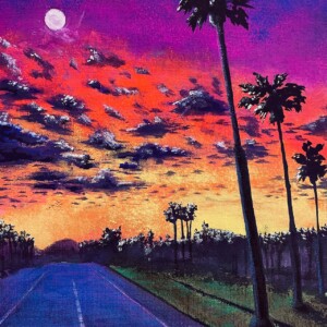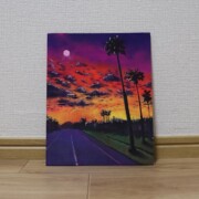 風景画【夕焼け】アクリル、色鉛筆