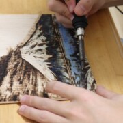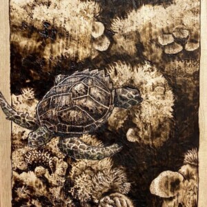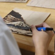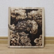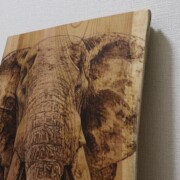 ウッドバーニングで丁寧に仕上げられた、象の動物画の原画です。繊細な線で描かれた象の表情や皮膚の質感、背景の細部まで、こだわりました。部屋のインテリアとしてだけでなく、贈り物としても喜ばれる一点ものです。