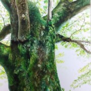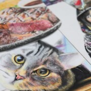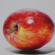 最初に大まかな色を絵の具で表現し、細部を色鉛筆で仕上げました。