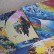 アクリル絵の具と色鉛筆を使い作成しました!