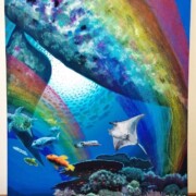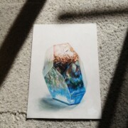 アクリル絵の具の上に色鉛筆を塗り重ねたことで、光に当てるとキラキラ光る表現にしました!